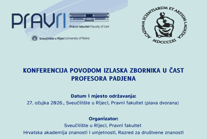 The Faculty of Law in Rijeka and the Croatian Academy of Sciences and Arts are pleased to invite all interested parties to the Conference marking the publication of the Collection of papers in Honor of Professor Padjen.