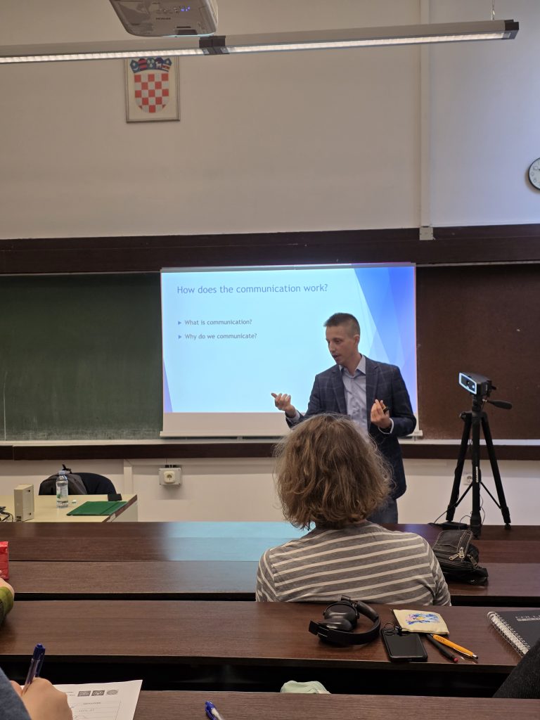 U sklopu kolegija Retorika i govorništvo u pravu, dr. sc. Mario Žuliček, suradnik Centra za studije mira i konflikata pri Institutu za budućnost Sveučilišta u Rijeci, na #pravri je održao predavanje o utjecaju komuniciranja na procese odlučivanja. Predavanje je prisutnim studenticama i studentima prikazalo modele komunikacije, načine na koji mogu strateški prilagoditi komunikaciji određenoj situaciji te posebno raspravilo utjecaj emocija na odlučivanje. Zahvaljujemo gostujućem predavaču na vrijedne uvide u komunikologiju.