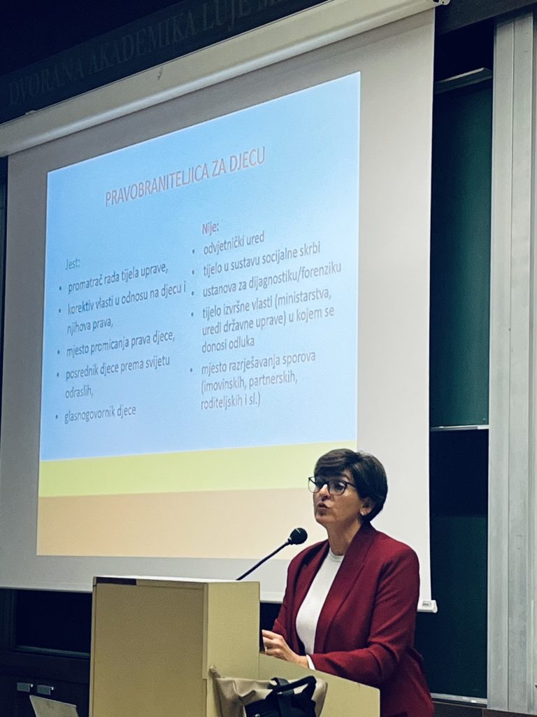 Studenti druge godine integriranog studija prava imali su priliku sudjelovati na gostujućem predavanju savjetnice pravobraniteljice za djecu, Danijele Žagar, dipl. iur. Tijekom izlaganja, studenti su se upoznali s ulogom i nadležnostima Ureda pravobranitelja za djecu, kao i s aktualnim izazovima u području zaštite i promicanja dječjih prava u Hrvatskoj.