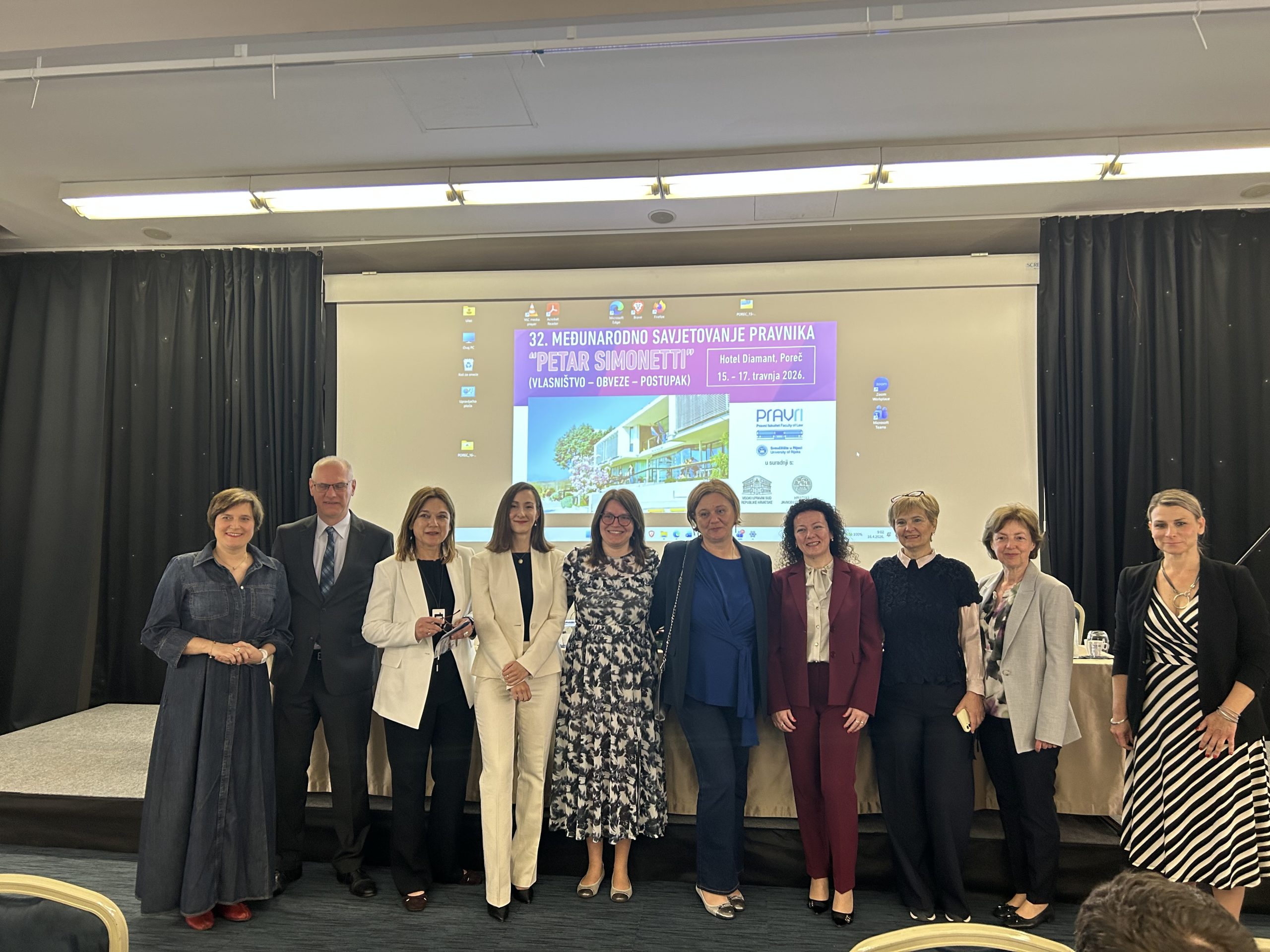 Članovi 2ND-GEN-FAM-BIZ projekta sa suradnicima izložili su rezultate projektnih istraživanja u čak 5 izlaganja pred domaćim sucima, odvjetnicima i pravnicima na tradicionalnome savjetovanju, 32. Međunarodnome savjetovanju pravnika “Petar Simonetti” koje je održano 16.4. 2026. u Poreču.