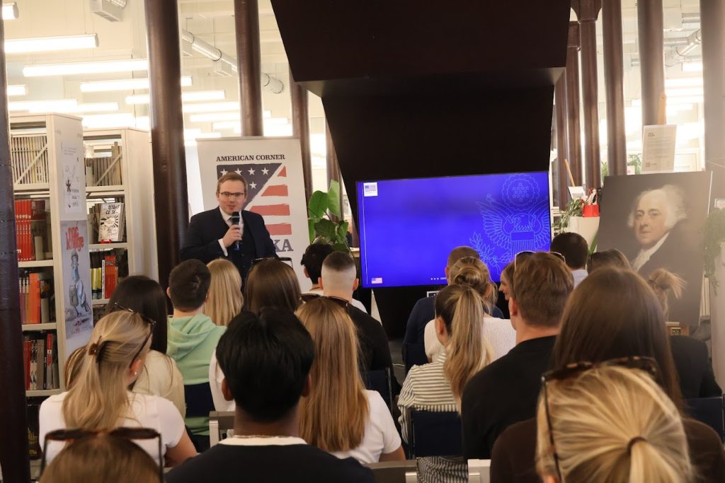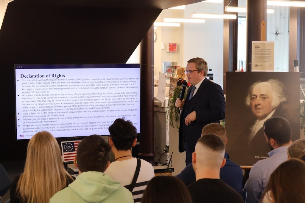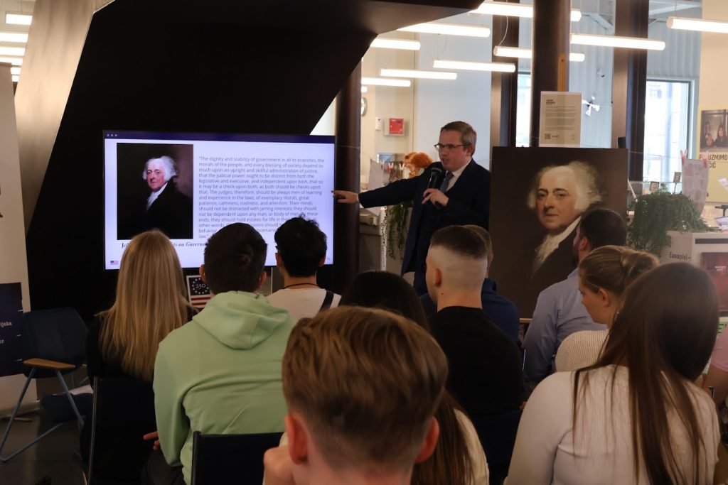 Studenti Pravnog fakulteta u Rijeci su 23. travnja 2026. godine sudjelovali na predavanju pod nazivom Freedom 250: From Courtroom to Constitution—John Adams and the Foundations of the Rule of Law, koje je održao Kevin Peter Curran, pomoćni ataše i vice-konzul u Veleposlanstvu Sjedinjenih Američkih Država u Zagrebu. Predavanje je održan u Američkom kutku u Gradskoj knjižnici Rijeka.