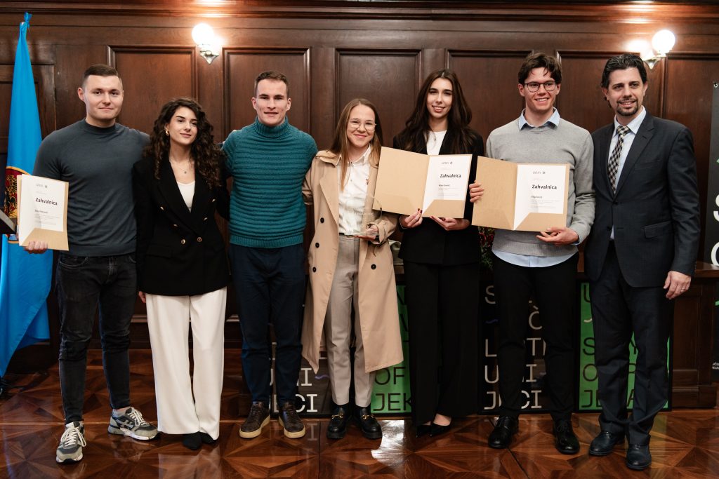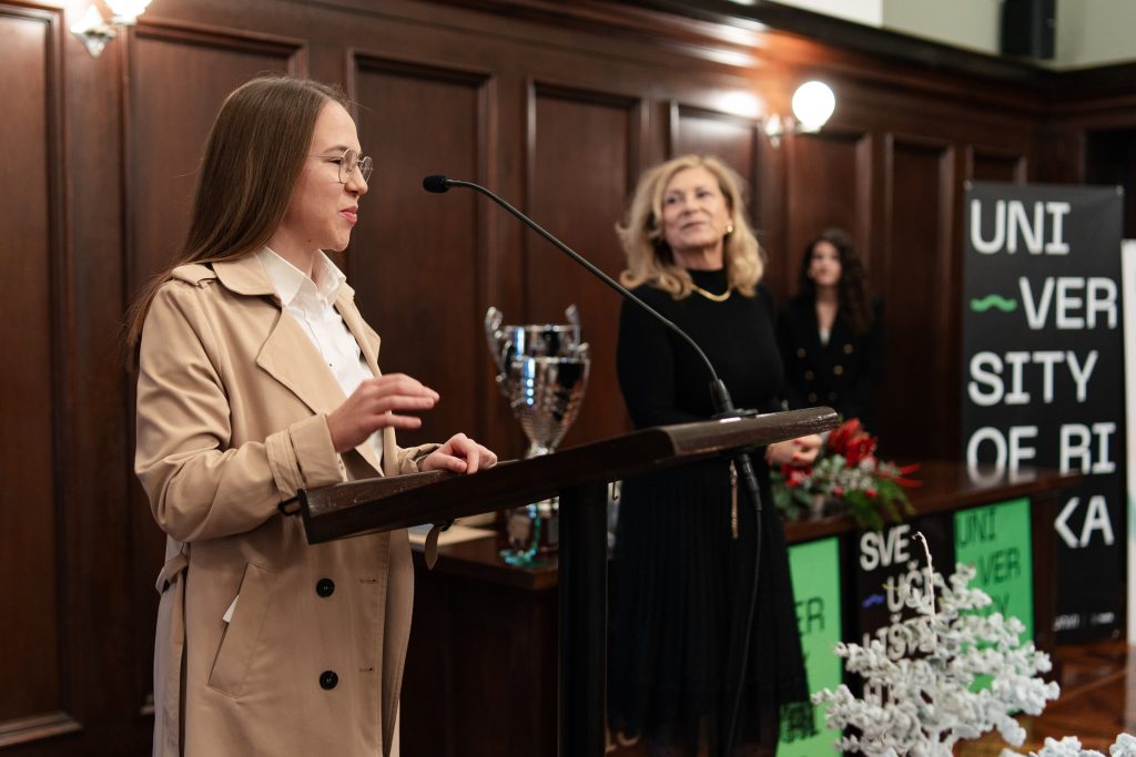 Na Rektoratu Sveučilišta u Rijeci u srijedu, 17. prosinca 2025., održana je svečana dodjela priznanja i nagrada najboljim studenticama i studentima sportašima Sveučilišta u Rijeci za akademsku godinu 2024./2025. Priznanja su dodijeljena najuspješnijim studenticama i studentima sportašima za ostvarene rezultate na međunarodnim, nacionalnim i lokalnim natjecanjima, kao i voditeljima te sastavnicama UniSport lige.